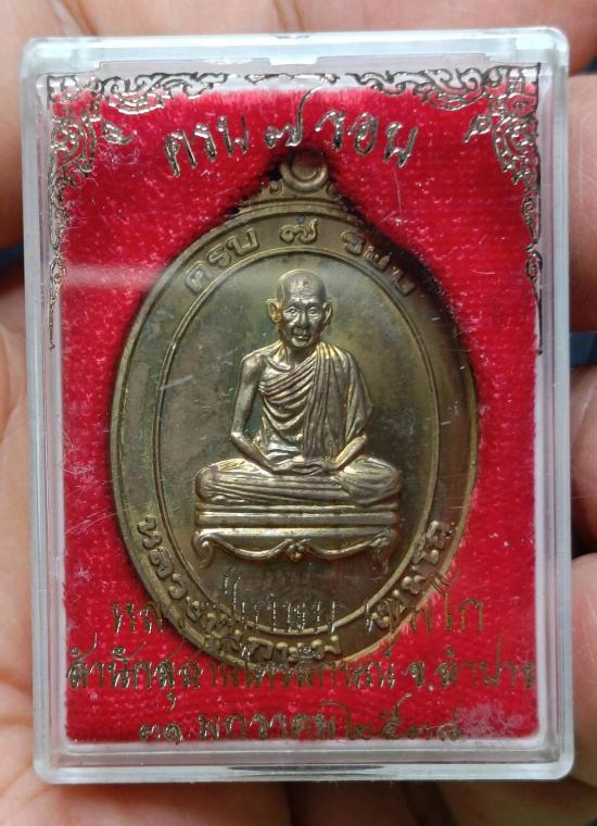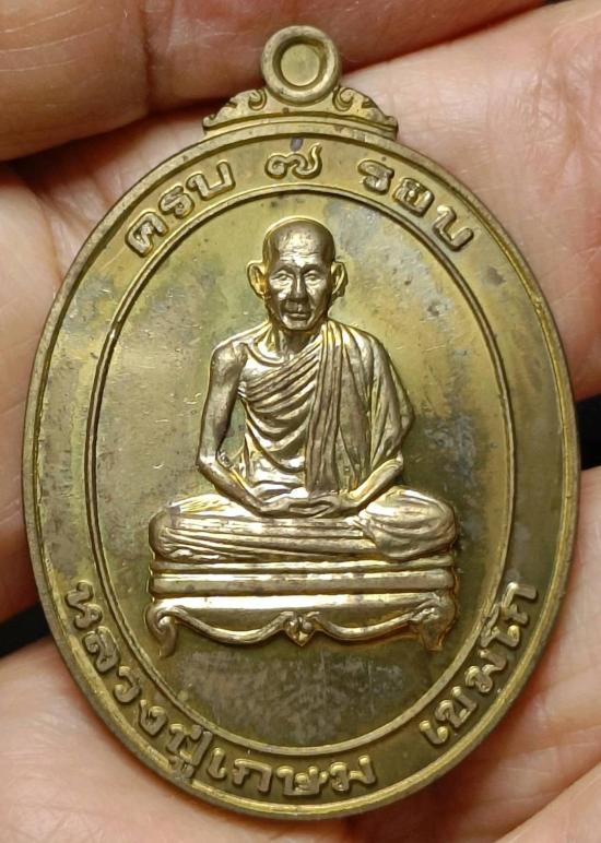 เหรียญหลวงพ่อเกษม เขมโก รุ่น 7 รอบ ปี 38 เนื้อฝาบาตร พร้อมกล่องเดิมๆ เบาๆครับ