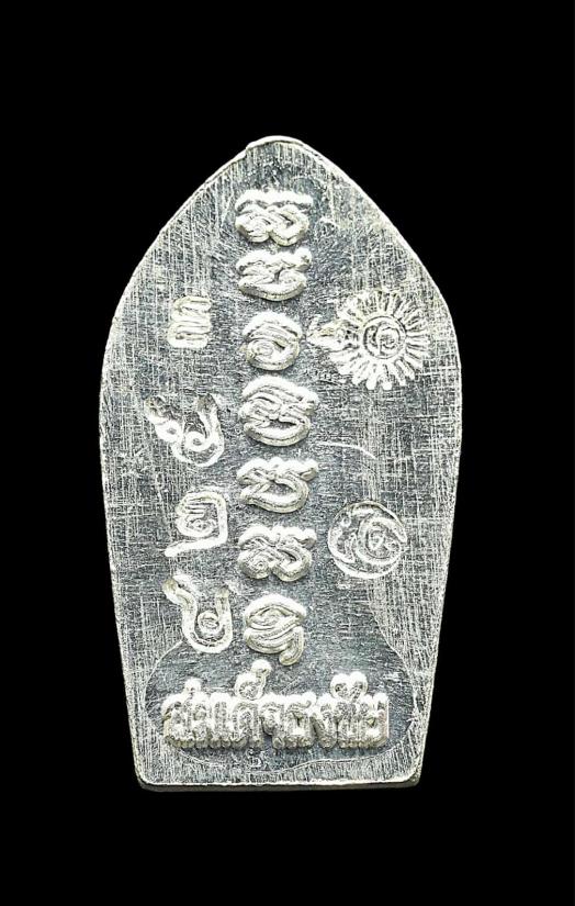 -ด้านหลัง มีพระคาถาพรมงคล ๗ ตัว "สะ ธะ วิ ปิ ปะ สะ อุ"คือ ยันต์หัวใจโพชฌงค์ ๗ ใช้ได้สารพัด ดีทุกด้าน