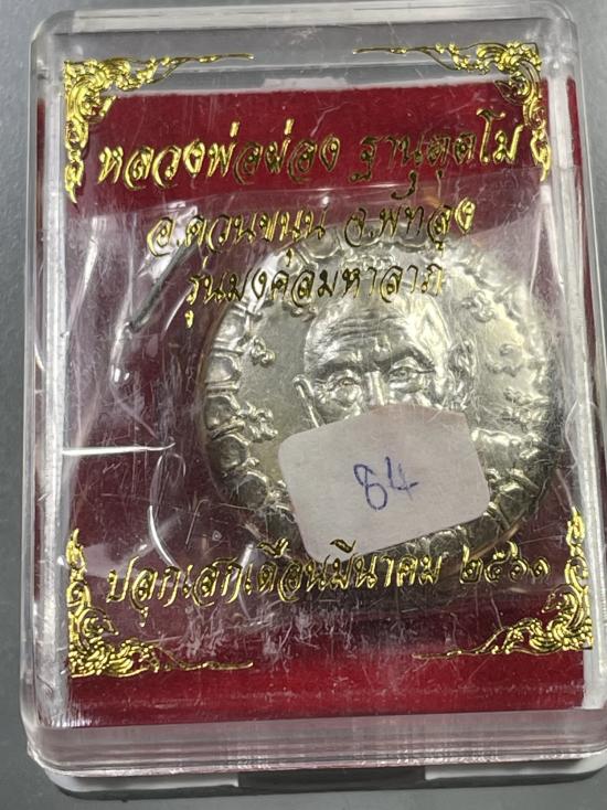 เหรียญตลับยาหม่อง เนื้อเงิน ด้านหลังติดหนังเสือ พ่อท่านผ่อง วัดแจ้ง84