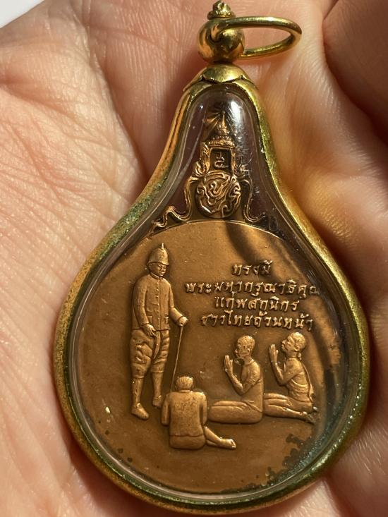 เคาะเดียว เหรียญทองแดงซาติน พระปิยมหาราช (พิมพ์ทรงมหาชนก) ด้านหลังทรงเลิกทาส พิมพ์ใหญ่ |