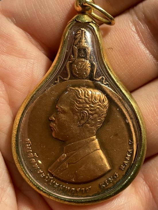เหรียญทองแดงซาติน พระปิยมหาราช (พิมพ์ทรงมหาชนก) ด้านหลังทรงเลิกทาส พิมพ์ใหญ่ พิธีเดียวกับเหรียญพระมหาชนก |