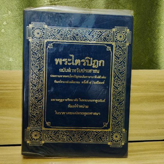 พระไตรปิฎก ฉบับสำหรับประชาชน ย่อความจากพระไตรปิฎกฉบับภาษาบาลี 45 เล่ม โดยมหามกุฎราชวิทยาลัย ในพระบรมราชูปถัมภ์ เล่มใหญ่หนา 820หน้า เล่มใหญ่