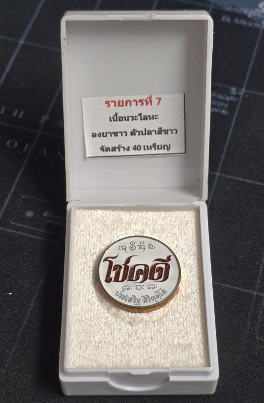 เนื้อนวะโลหะ ลงยาขาว ตัวปลาสีขาว จำนวนสร้างเพียง 40 องค์(ไม่ได้มีทุกแพ็ค)