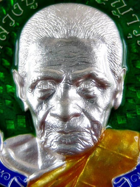 #### เนื้อเงิน #### เหรียญเมตตา เนื้อเงินลงยาสีเขียว โบว์น้ำเงิน ลงยาจีวร หลวงปู่อิ่ม วัดทุ่งนาใหม่ (---A82---)