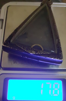 หนัก 17.8 กรัม ขนาดกระจก สูง 4 ซ.ม. ฐานกว้าง 3.5 ซ.ม. ปล.**กระจกหน้ามีรอยร้าวนิดหนึ่ง** ตามรูป.พิจารณาก่อนนะครับ..จะได้ไม่เสียเวลาทั้งสองฝ่าย ขอบคุณครับ |