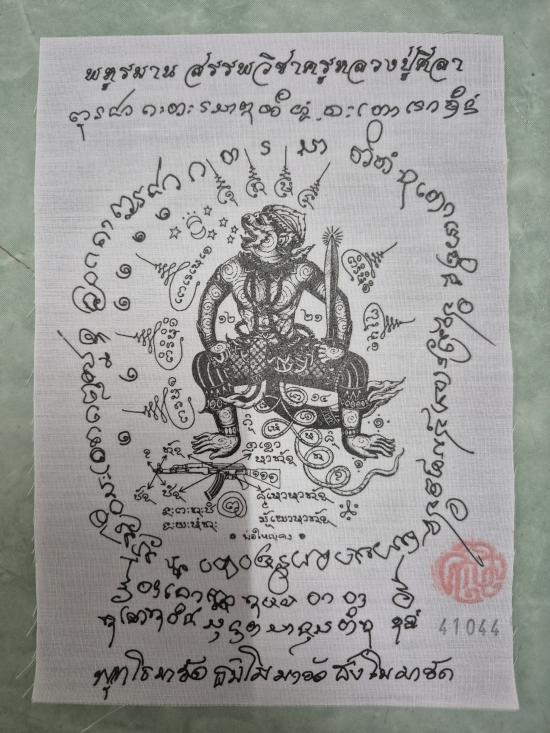 วัดใจ. คาะเดียวแดง ผ้ายันต์ พหูรมาน 1 ผืน + รูปภาพสี หลวงปู่มหาศิลา เช่าบูชามาจากธรรมอุทยาน แม่ทัพภาค2 หลวงปู่ศิลา เลข 41044