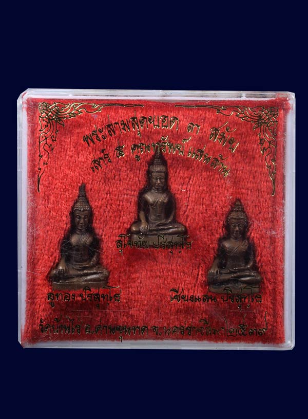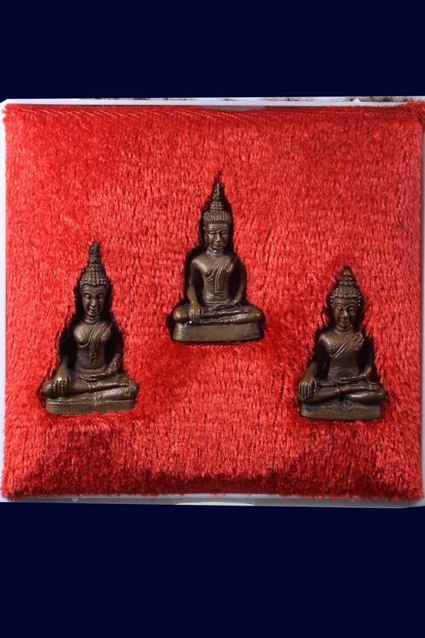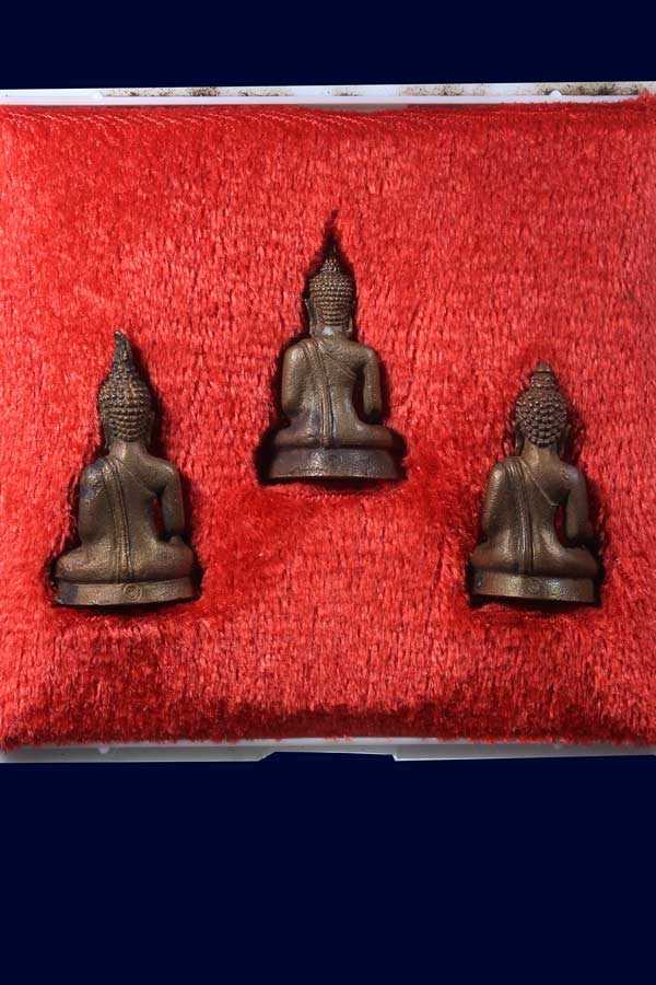 พระสามสุดยอดสามสมัย รุ่นเสาร์ 5 1 ชุด 3 องค์ พิธีใหญ่ หลวงพ่อคูณปลุกเสก เนื้อนวะ พร้อมกล่องเดิม
