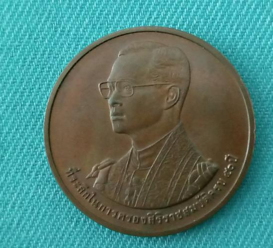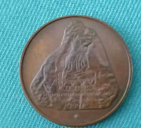 เหรียญที่ระลึกในการครองสิริราชสมบัติครบ 50ปี ร.9 ด้านหลังวัดเขาชีจรรย์ เคาะเดียวค่ะ |