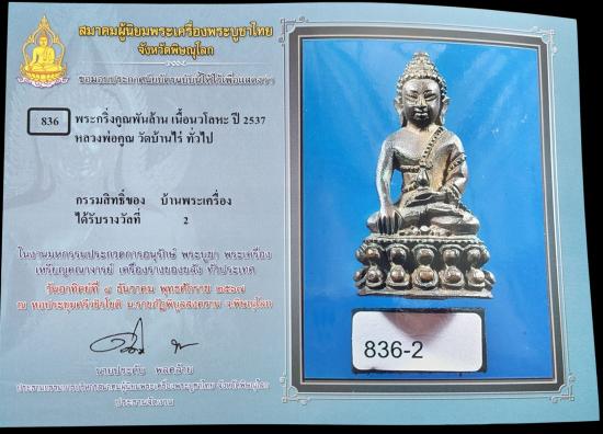 พระกริ่งคูณพันล้าน เนื้อนวโลหะ ปี 2537 พร้อมใบประกาศ ติดรางวัลที่ 2 งานจังหวัดพิษณุโลก (งานสมาคมฯ)