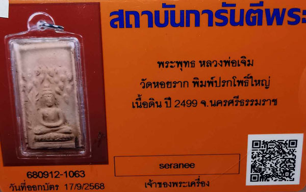 พระพุทธ หลวงพ่อเจิม วัดหอยราก พิมพ์ปรกโพธิ์ใหญ่ เนื้อดิน ปี2499 จ.นครศรีธรรมราช + บัตรG-pra สภาพสวยเดิมค่ะ |