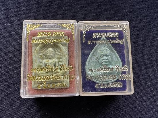 +++ เคาะเดียวเหมา 2 องค์ ++ พระผงหยก พิมพ์พระพุทธและพิมพ์หยดน้ำ หลวงพ่อวิริยังค์ วัดธรรมมงคล พ.ศ.2536 กล่องเดิม สวยๆ |