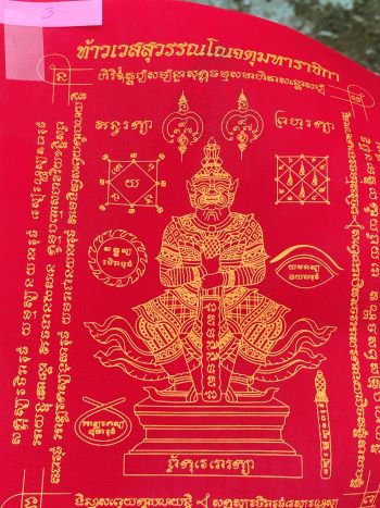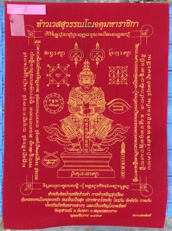 ผ้ายันต์ท้าวเวสสุวรรณโณจตุมหาราชิกา หลวงพ่ออิฎฐ์ วัดจุฬามณี จ.สมุทรสงคราม ปี 2557 *** ขนาด A4 *** ( มีปั๋มตราวัด ) ผืนที่ 3 |