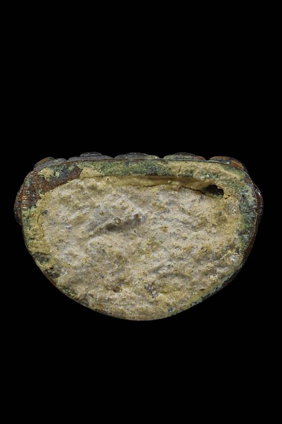 ที่ฐานบรรจุมวลสารศักดิ์สิทธิ์คุณแม่บุญเรือน มีอัฐิฐาตุ อังคารธาตุ ทรายเงินทรายทอง พลอยเสก นิลกาล ผงพระพุทธโธน้อยที่แตกหัก และของอธิฐานของคุณแม่บุญเรือนอีกมากมาย