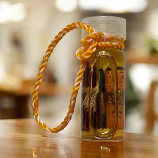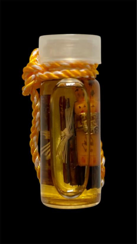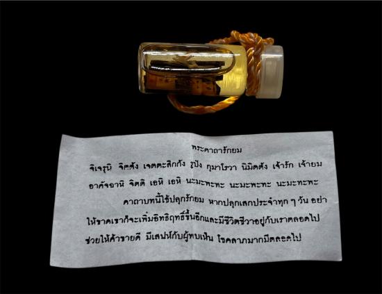 รัก ยม แช่น้ำมันอาถรรพ์ หลวงปู่หงษ์ท่านทำการเรียกจิตวิญญาณเด็กมาสถิตในหุ่นไม้แกะในขวดให้ดูแลรักษาคุ้มครอง ช่วยเหลือผู้เลี้ยงบูชา ให้โชคลาภ เมตตามหานิยม แก่ผู้เลี้ยงบูชา หรือทำตามคำขอของผู้เลี้ยงบูชา