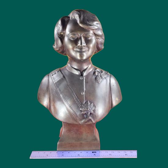 พระรูปหล่อโลหะทองเหลืองรมดำครึ่งพระองค์ สมเด็จพระเจ้าพี่นางเธอ เจ้าฟ้ากัลยาณิวัฒนาขนาดสูง 13 นิ้ว ปี 2552 สมเด็จพระเทพรัตน์ฯ เททอง ณ วัดสระเกศ มูลนิธิโรคไตจัดสร้าง หมายเลข 2703 สภาพตามรูป |