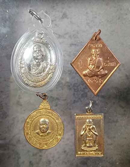 เหรียญหลวงพ่อโต๊ะ วัดข่อย จ.สิงห์บุรี รุ่น 3 + เหรียญข้าวหลามตัด หลวงปู่เอี่ยม วัดสะพานสูง ออกวัดลำโพ +เหรียญ พระครูนนทปัญญาภรณ์ วัดเสาธงหิน นนทบุรี ปี21 +เหรียญหลวงพ่อกบ วัดช่องสาริกา ลพบุรี |