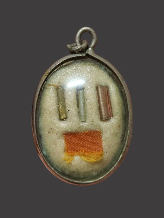 A538. ล็อคเก็ต หลวงพ่อกวย หลังฝัง ตะกรุด 3 ดอก + จีวร ไม่ทราบปี เคาะเดียวเเดง |