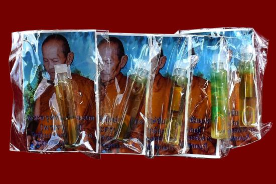 ชุด 5 ขวด...น้ำมันมหาเสน่ห์พรายเนื้อหอม ปี 2557 พระครูน้อย วัดชัยมงคล จ.สุพรรณบุรี พร้อมซองรูปเดิมจากวัด |