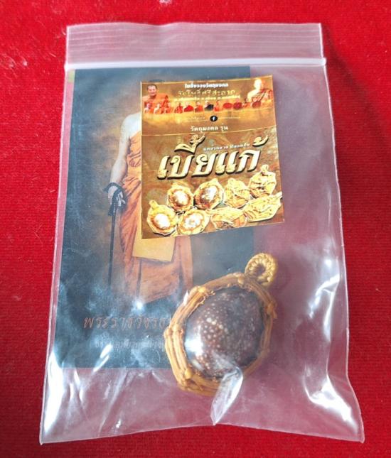 เบี้ยแก้ หุ้มจีวร ถักเชือก หลวงปู่ศิลา วัดโพธิ์ศรีสะอาด มีแผ่นเลขกำกับ ฝังตะกรุดทองเหลือง พร้อมใบคาถา ปี2567 |