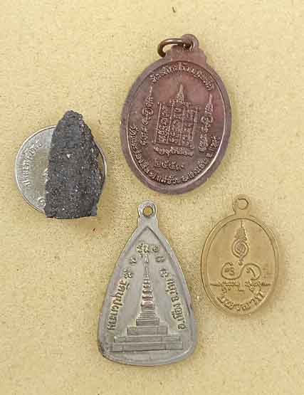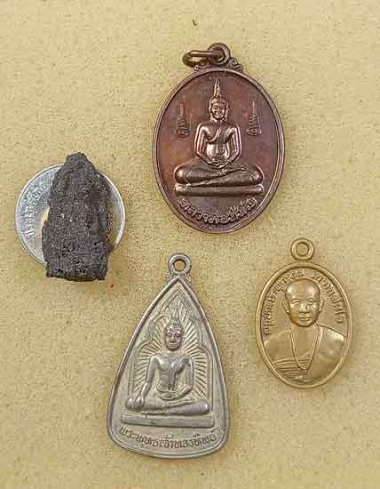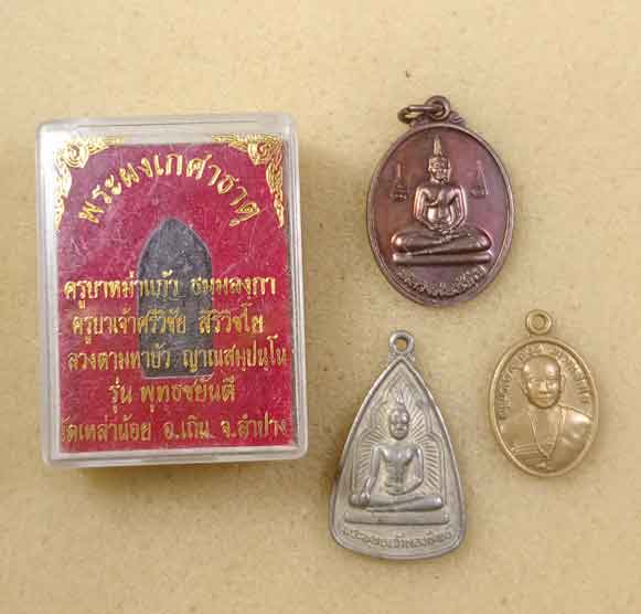 พระผงเกศาธาตุ รุ่นพุทธชยันตี วัดเหล่าน้อย ลำปาง +เหรียญหลวงพ่อทันใจ วัดแพะร่องหิน แพร่ +เหรียญพระพุทธเจ้่าทองทิพย์ วัดบุปผาราม น่าน + เหรียญเล็ก มหาลาภ ครูบาบุญชุ่ม |