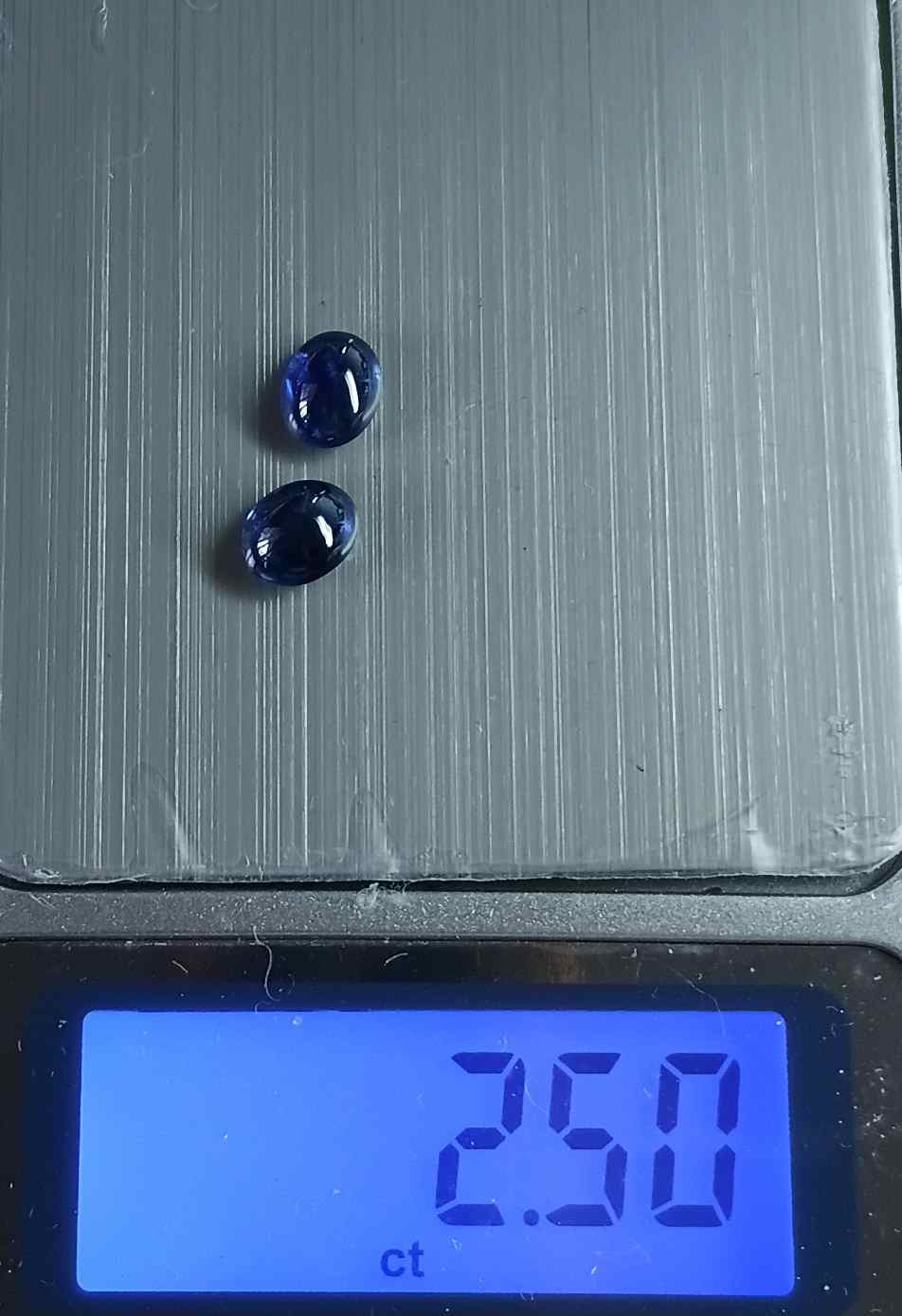 แซฟไฟร์หลังเบี้ยเผาเก่า 2 เม็ด น้ำหนักรวม 2.50 กะรัต |