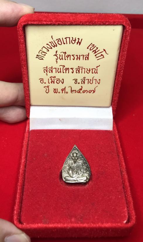 แดงเคาะแรก...เหรียญหล่อใบโพธิ์หลวงพ่อเกษม สุสานไตรลักษณ์ ลำปาง ปี 2537 รุ่นไตรมาส "เนื้อเงิน" พิมพ์ใหญ่ พร้อมกล่องกำมะหยี่เดิมครับ