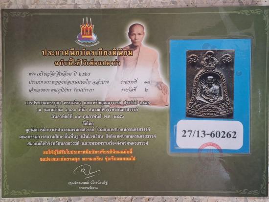 เหรียญหล่อ พิมพ์ซุ้มระฆัง ปี 2528 เนื้อนวะโลหะ สร้างเพียง 2,337 เหรียญ หลวงพ่อเกษม เขมโก มาพร้อมใบปรกาศติดรางวัลที่2