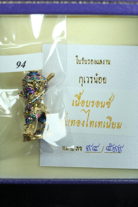 ** สีสวยนิยม วัดใจ 20 โคตรสวย ศิลป์สวยๆ พุทธคุณแน่นๆ พิธีใหญ่ ราคาจอง 999 **กุเวรน้อย รุ่น ชนะมารบันดาลทรัพย์ (ลอยองค์) ข้าจะปราบหมู่มาร และจะบันดาลทรัพย์ให้พวกเอ็ง เนื้อบรอนซ์ชุบทองไทเทเนียม เลข 94
