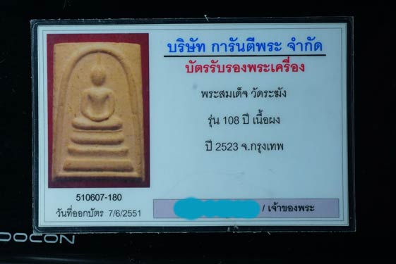 สมเด็จวัดระฆัง 108 ปี พร้อมบัตร รับประกันตามกฏค่ะ