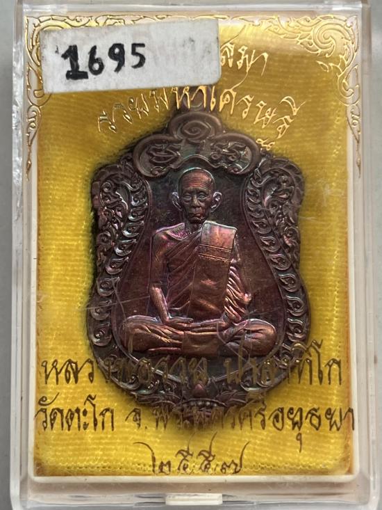 เหรียญเสมารวยมหาเศรษฐี หลวงพ่อรวย วัดตะโก ปี 2557 เนื้อทองแดงผิวรุ้งเทพๆ เลข 1695 สภาพสวยผิวเดิมๆ ไม่ผ่านการใช้งาน มีกล่องเดิม รับประกันพระแท้ วัดใจเท่าไหนเท่านั้นครับ