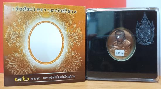 รูปหล่อวงรีในหลวงร.9 ทรงงาน รุ่นเย็นศิระเพราะพระบริบาล 80 พรรษา ปี2550 (((เนื้อทองแดงรมดำ))) กล่องเดิม