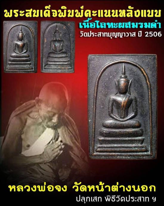 พระสมเด็จพิมพ์คะแนนหลังแบบ เนื้อโลหะผสมรมดำ วัดประสาทบุญญาวาส ปี2506 กรุงเทพ พร้อมเลี่ยม(เคาะเดียวแดง) |