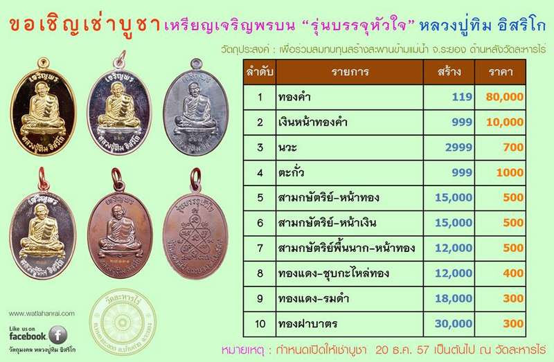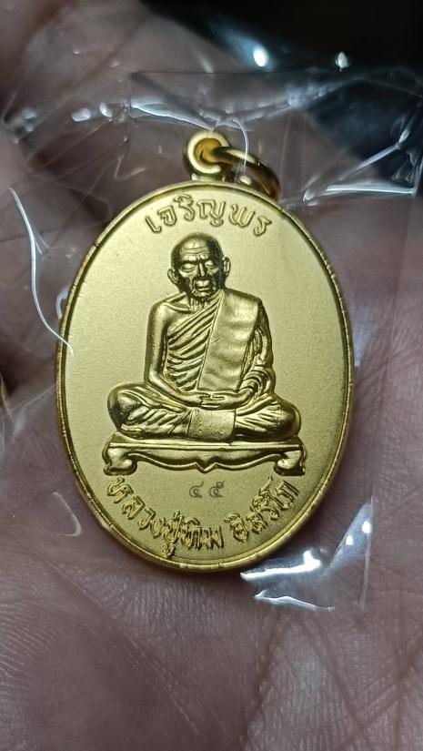 @200.-เหรียญเจริญพรบน หลวงปู่ทิม วัดละหารไร่ ปี57 รุ่นบรรจุหัวใจ เนื้อกะไหร่ทอง หมายเลข 45 ไม่มีกล่อง