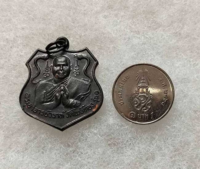 เหรียญกราบ รุ่นแรก พระอาจารย์วราห์ (หลวงพ่อวราห์) วัดโพธิ์ทอง กรุงเทพฯ ปี2541 เนื้อทองแดงรมดำ |