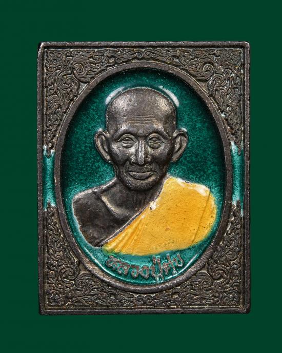 เหรียญแสตมป์"มงคลสุข"หลวงปู่ศุข วัดปากคลองมะขามเฒ่า ป ี๓๙ เนื้อเงิน ลงยาเขียว |