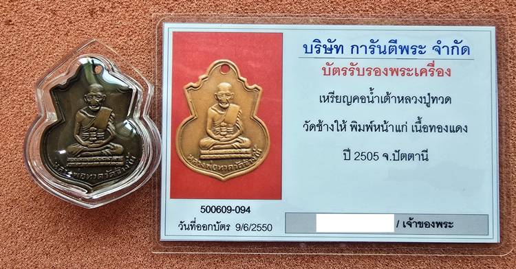 เหรียญหลวงปู่ทวด วัดช้างให้ พิมพ์คอน้ำเต้า หน้าแก่ มีฟัน (บล็อกนิยม) ปี 2505 + บัตรรับรองพระแท้ G-PRA |