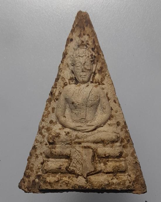 พระเนื้อผงพิมพ์สามเหลี่ยมหลังจารดินสอไม่รู้ที่เคาะเดียวครับ |