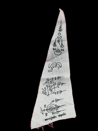 ปู่หลิว ผ้ายันต์ประกันชีวิต ปี 39 สีขาว สูง 8 นิ้ว กว้าง 3 นิ้วครึ่ง |