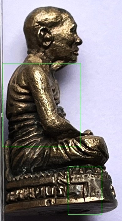 ****************สีพระแตกต่างจากสีพระจริงเล็กน้อย จมูกยุบมีตำหนิ ด้านหลังมีตำหนิตรงหลังและแขนจุดที่วงภาพ2ครับ |