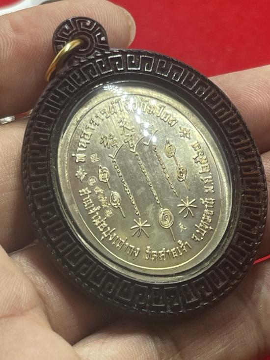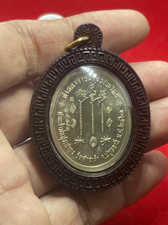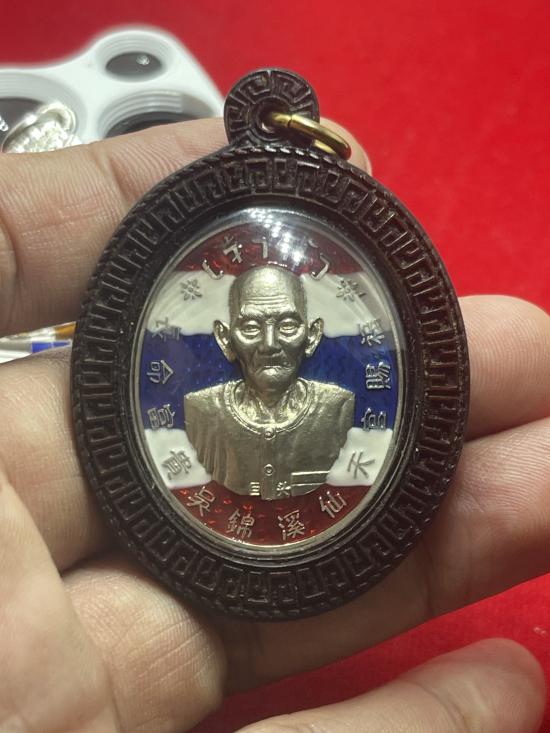 เหรียญเซียนแปะโรงสี รุ่นเจ้าสัว สมปรารถนา เนื้ออัลปาก้าลงยาธงชาติ เลี่ยมไม้มงคล เลข579 ไม่มีกล่อง |