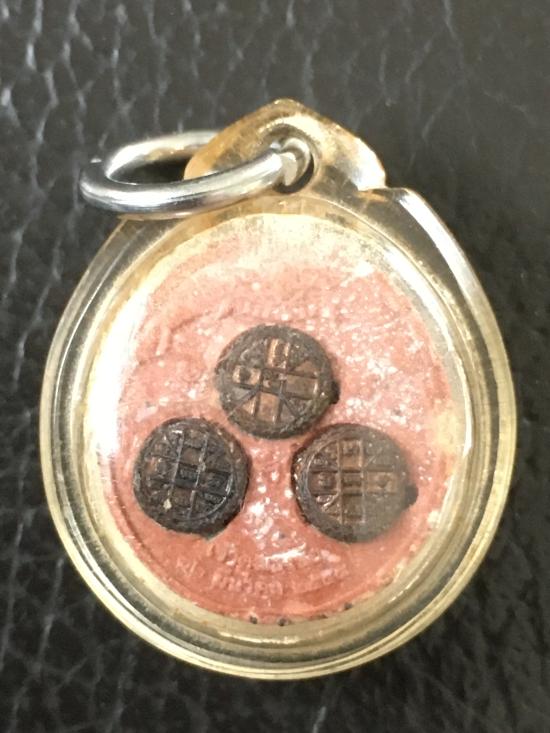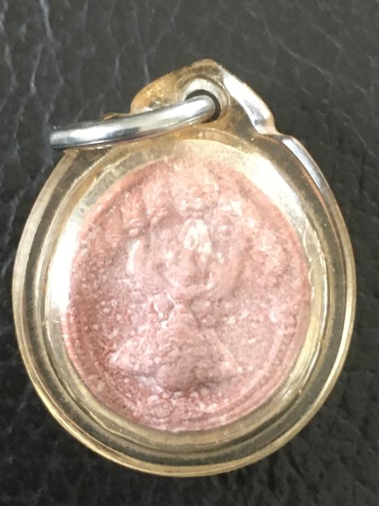 พระนารายณ์ทรงครุฑ ประทับยืนบนพระราหู ล้อมด้วยพระนวนาค 9 เศียร เนื้อผงพุทธคุณสีแดง หลังฝังแผ่นยันต์หนุนดวงทองแดง วัดไตรมิตร ปี 2548 พิมพ์เล็กหายาก |