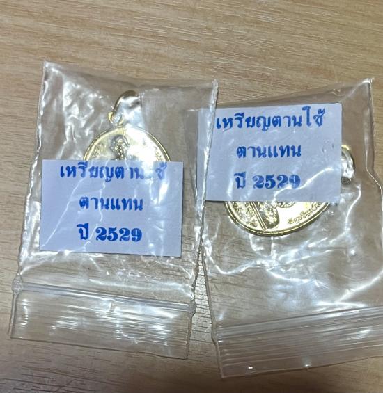เหรียญตานใช้ ตานแทน (ต่ออายุ เสริมดวง คลายกฎแห่งกรรม) ครูบาชัยยะวงศาพัฒนา วัดพระพุทธบาทห้วยต้ม จ.ลำพูน ปี 2529 หลวงพ่อฤาษีฯ วัดท่าซุง ได้กล่าวแก่ ดร.พรนพ พุกกะพันธ์ และคณะ (รับพระสองเหรียญ)