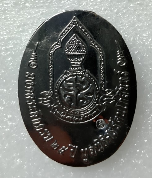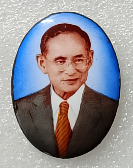 ด้านหน้าเป็นพระบรมรูปในหลวงรัชกาลที่ 9 ทรงสูทแบบสากล, ด้านหลังปิดด้วยแผ่นทองคำ เงิน หรือโลหะ และบรรจุมวลสารมหามงคล