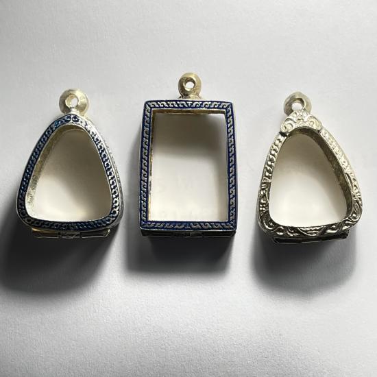 วัดใจเคาะเดียว ตลับพระเก่าลงยา 3 ใบ งานสวยมาก (ไม่ทราบโลหะค่ะ ตามภาพ) |