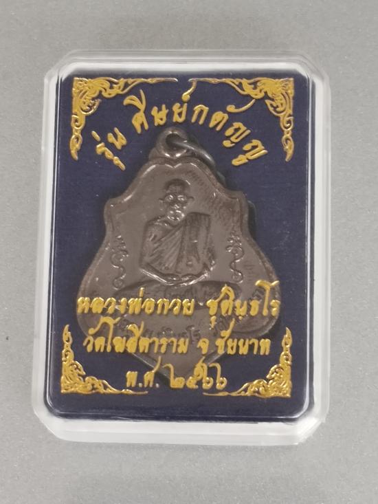เหรียญโล่ห์ หลังยันต์ เนื้อทองแดงรมดำ รุ่นศิษย์กตัญญู ปี 2566 หลวงพ่อกวย วัดโฆสิตาราม ชัยนาท |