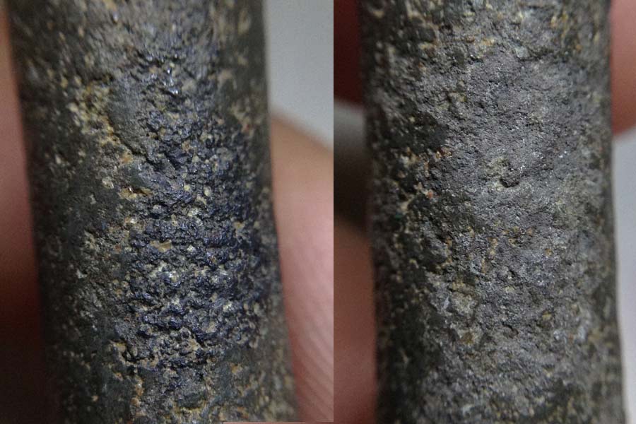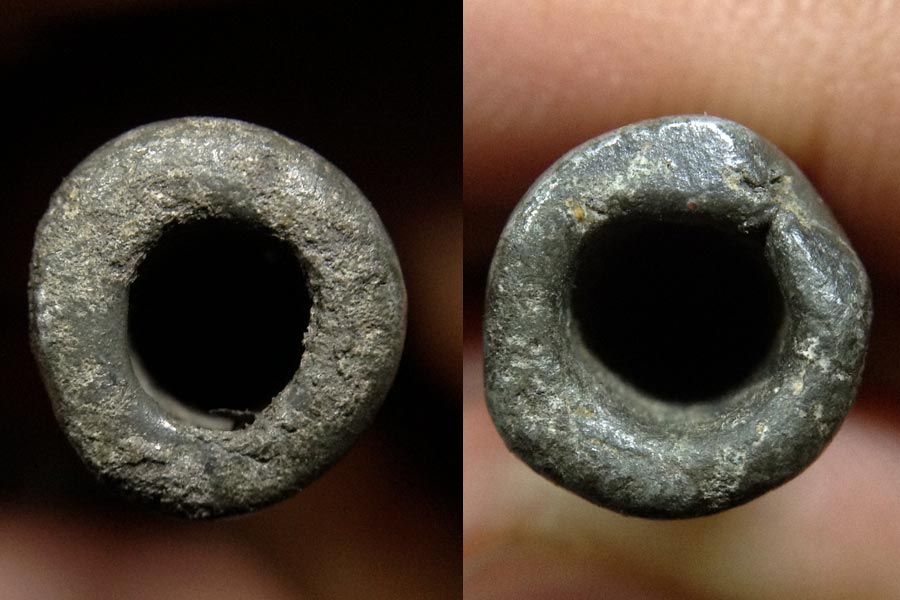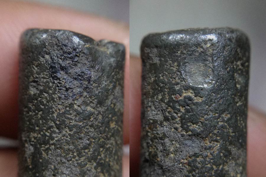 ตะกรุดเนื้อเก่ามันมากขนาดยาวประมาณ4นิ้วโต1เซนส่งตรวจเป็นตะกรุดเนื้อตะกั่ว ยาว3.7หุล (1นิ้วมี8หุล)....ซึ่งดอกจริงมีลักษณะเป็นเหมือนแร่หรือออกชินเงินผสมตะกั่วแปลกดีครับส่วนผสม ตรงที่โดนสัมผัสมากๆจะวาวแบบแร่ ตรงขอบหัวท้ายตะกรุดจะโดนสัมผัสมากเก่ามากๆๆๆ และแท้ดูง่ายด้วยครับ เป็นตะกรุดหล่อแบบโบราณไม่ใช่การม้วนมีเม็ดกรวดเล็กๆฝังตามผิวนอกจมในเนื้อไม่รูู้ว่าเกิดจากการหล่อหรือเป็นของกรุกรวดเลยจมในเนื้อนะครับ ต้องตั้งข้อสันนิษฐานเอาเอง. |