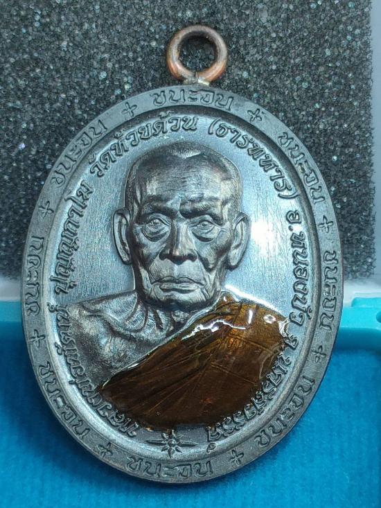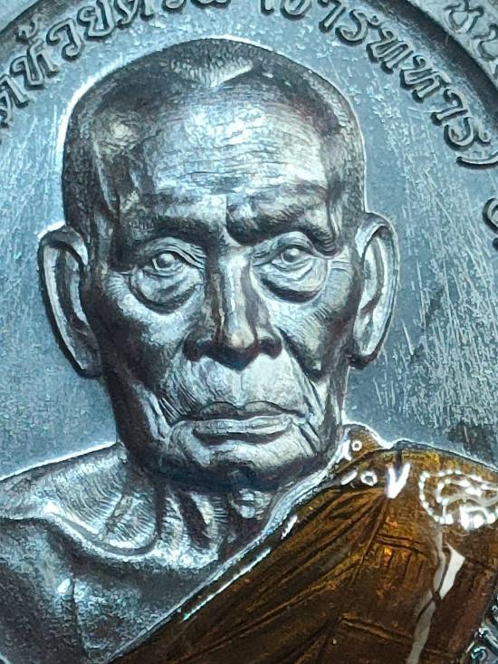เหรียญชนะจน65 หลวงพ่อพัฒน์ วัดห้วยด้วน ชนวนโบราณห่วงเชื่อม ลงยาจีวร เลข923 จมูกร้อย มีกล่อง