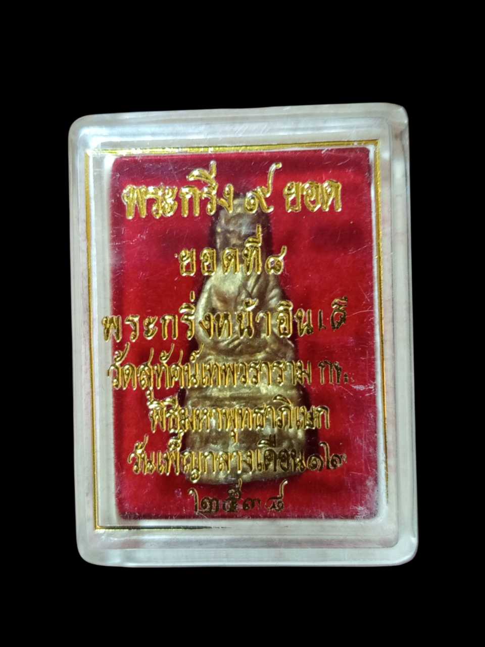 พระกริ่ง 9 ยอดวัดสุทัศน์ยอดที่ 8 หน้าอินเดีย พุทธาภิเษก ณ.อุโบสถวัดสุทัศน์ วันเพ็ญเดือน 12 ปี 2538 สภาพสวยพร้อมกล่องเดิม |