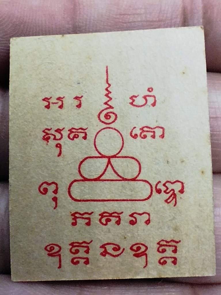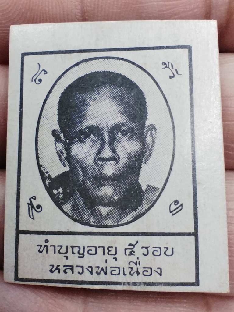 รูปถ่าย หลวงพ่อเนื่อง วัดจุฬามณี จ.สมุทรสงคราม ด้านหลังยันต์สีแดง สร้างในคราวทำบุญอายุครบ 5 รอบ ปี 2512 |