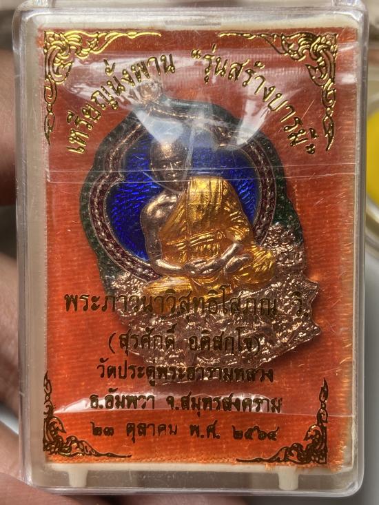 เหรียญ นั่งพาน เนื้อทองแดงลงยาน้ำเงิน แยกชุดกรรมการ สร้างบารมี พระมหาสุรศักดิ์ |